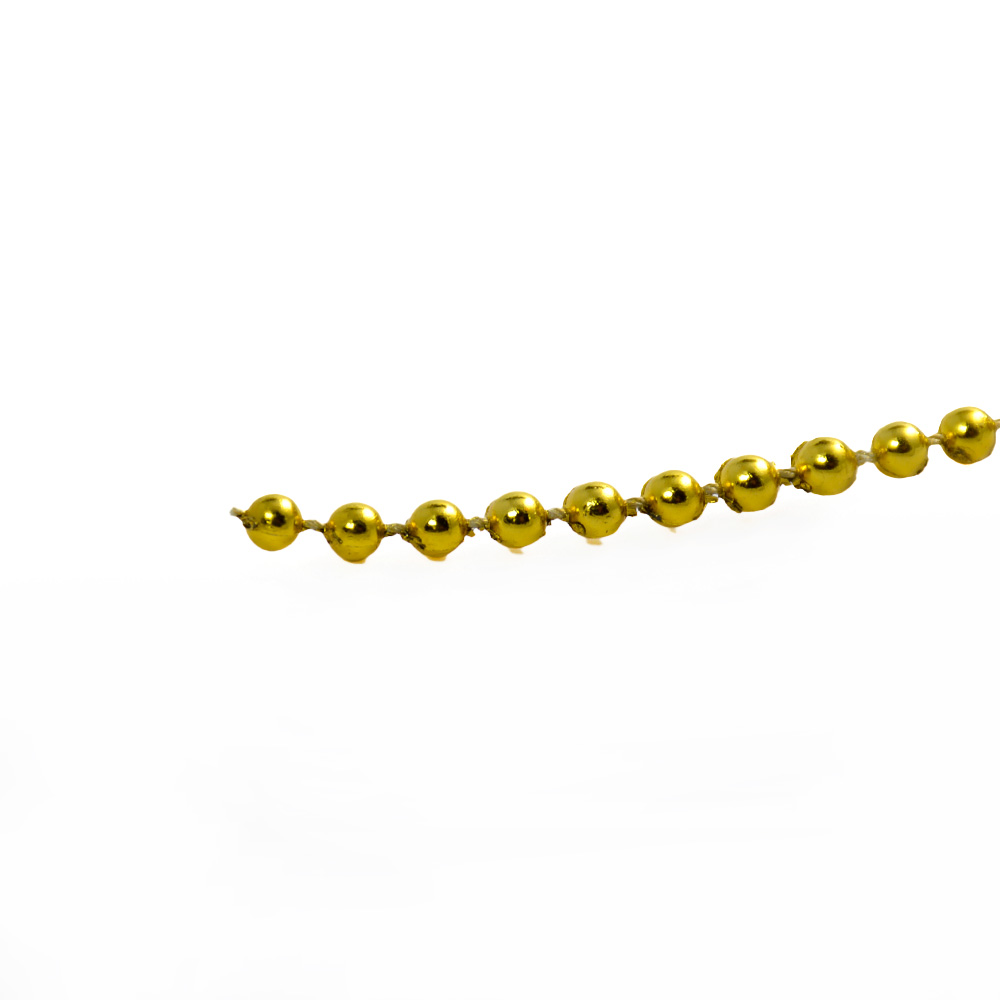 Perla continua dorada presentada en rollo de 45 metros, ideal para decoración y acabados en calzado, marroquinería, manualidades y trabajos artesanales. Su diseño de pequeñas perlas unidas en cadena aporta un acabado elegante y llamativo, siendo fácil de cortar y adaptar a diferentes proyectos decorativos.